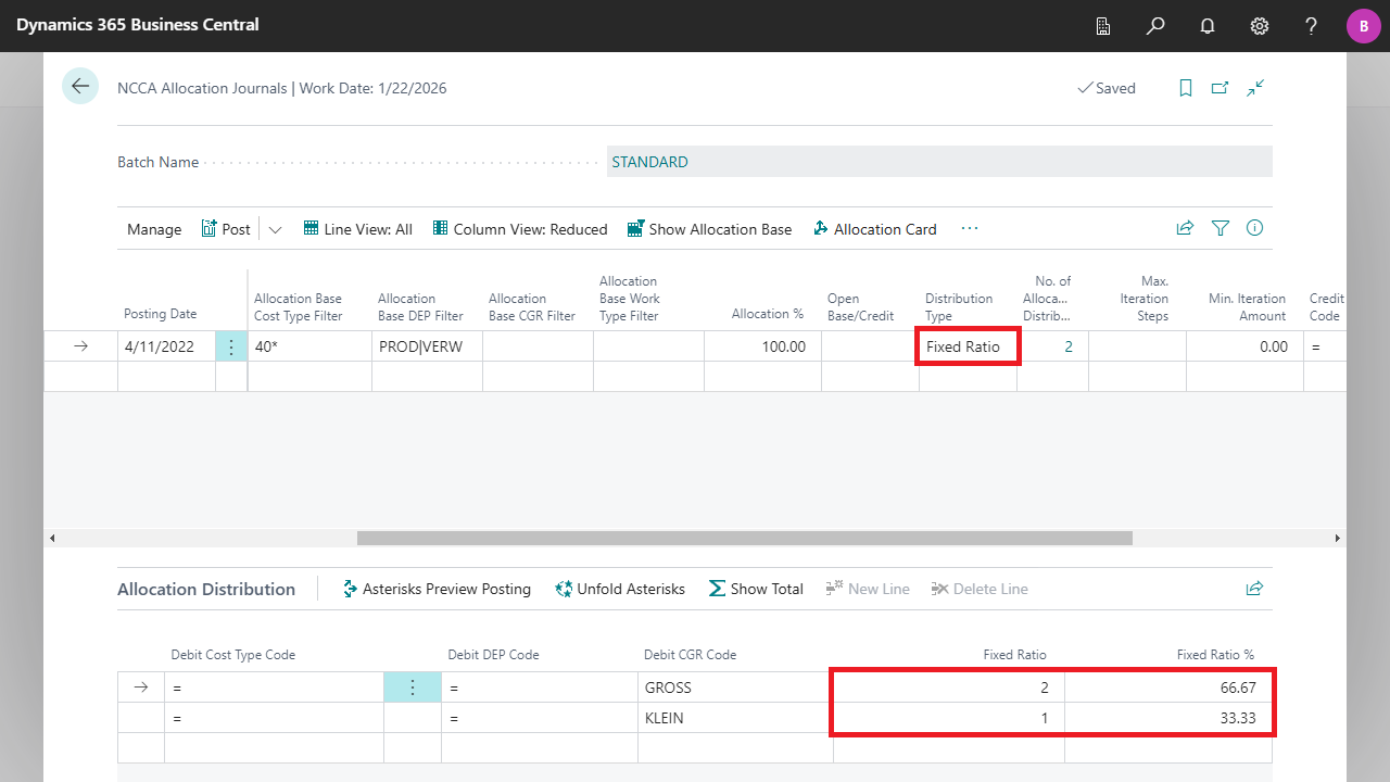 | Reference Ledger Entry Type | Specifies whether cost entries or cost budget entries should be used to calculate the distribution ratio. |