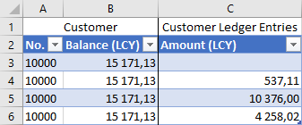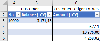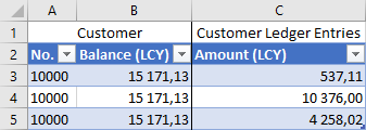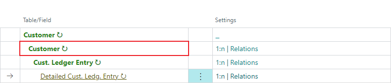 Example Customer 1:n Customer Ledger Entries without Column Inheritance
