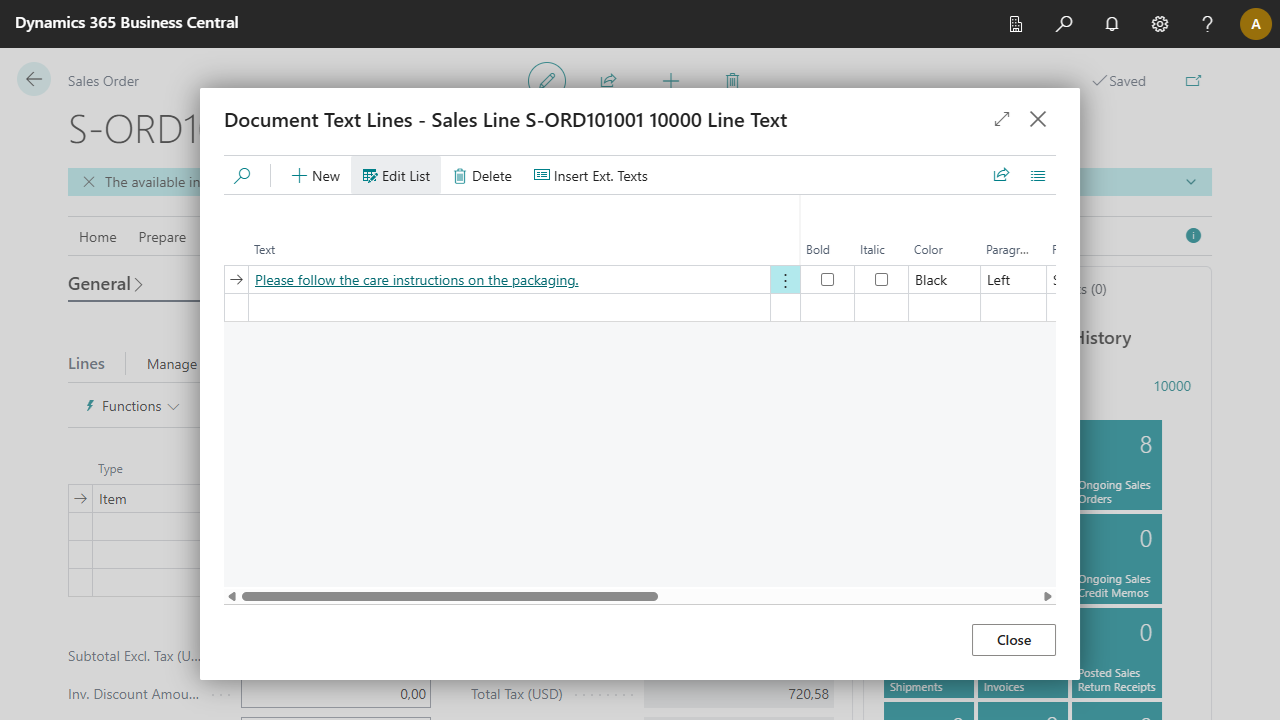 Formatting With the formatting functions in NAVAX Document Text, you can design your extended texts professionally and in accordance with corporate identity guidelines. You can adjust font type, size, and color, as well as control paragraph alignment and indentation...