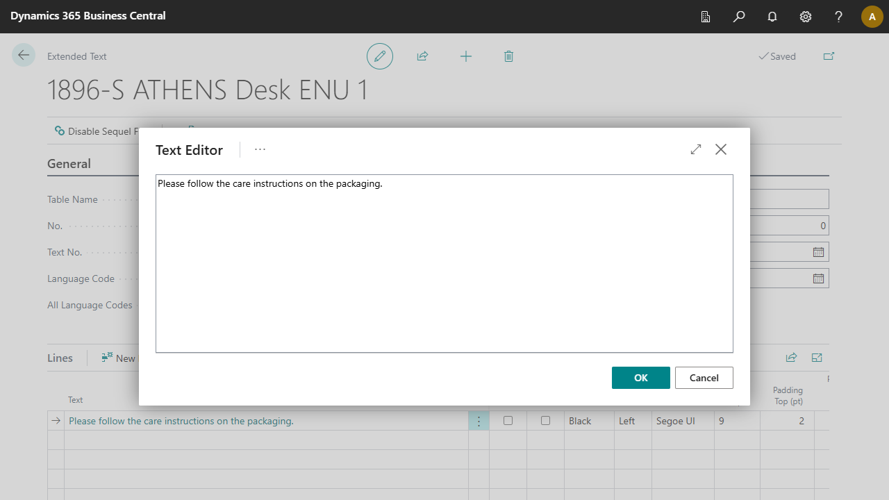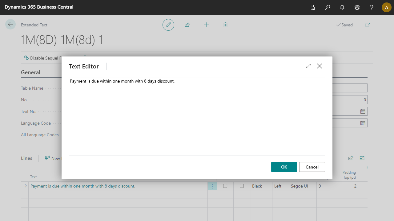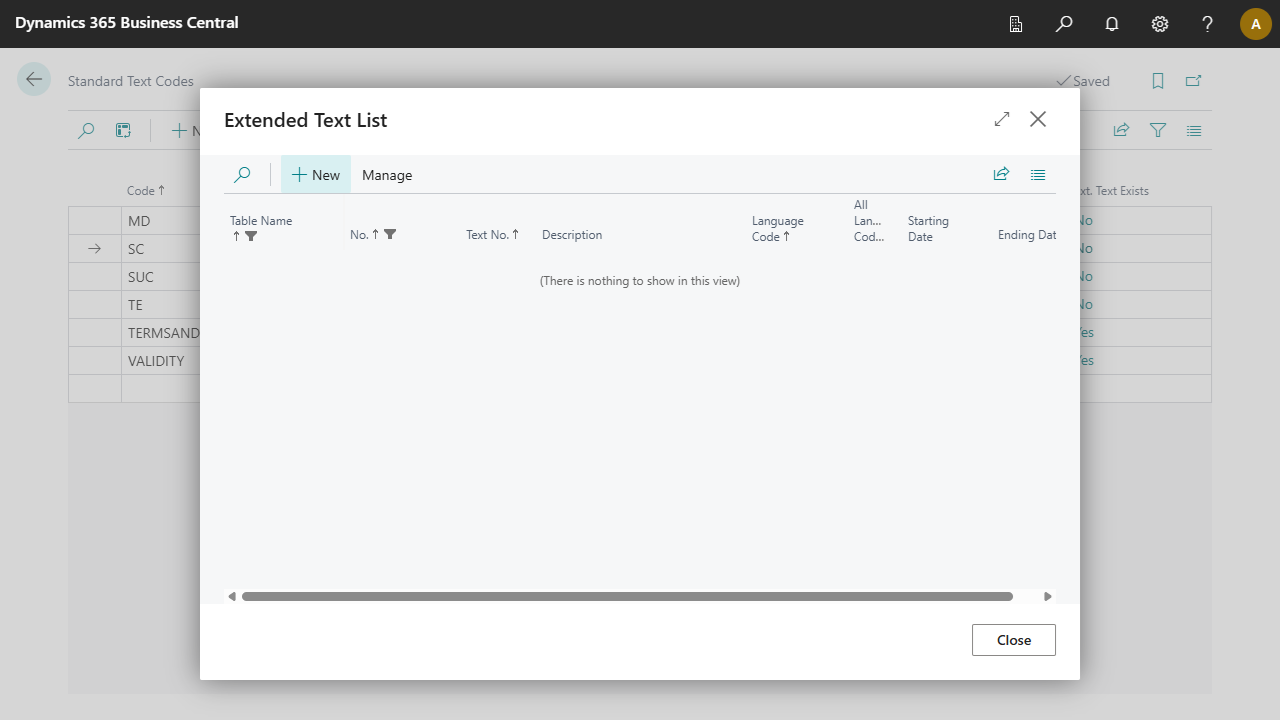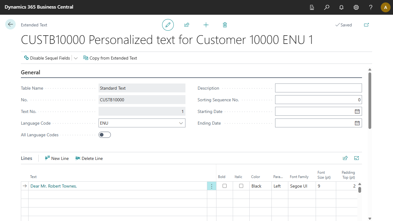 Standard Text Code Fields Using Standard Text Codes, you can manage Extended Texts for documents in Dynamics 365 Business Central. These codes allow you to store frequently used texts centrally and insert them on documents as needed...