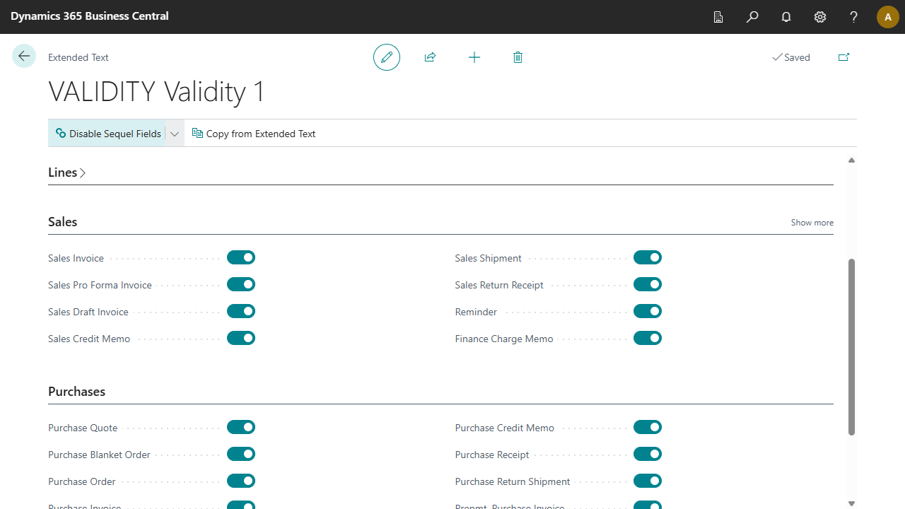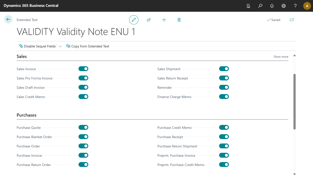 Advanced Extended Texts (beginning/ending/line texts) for sales, purchase and service documents.