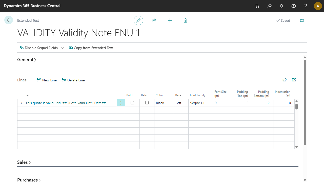 Line Texts Line texts are Extended Texts that are directly linked to master data such as items, resources, G/L accounts, or service items. The text appears automatically as line text below the respective line when you use the corresponding master data record in a document...