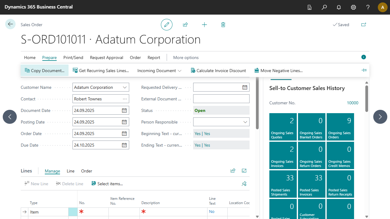 NAVAX Document Text is seamlessly integrated into the existing sales, purchase, service, and job processes of Business Central.