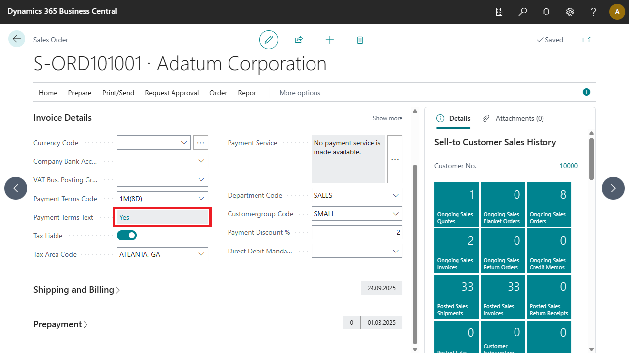 Orders from Dynamics 365 CRM are now provided with Document Text, analogous to the process of creating them in Dynamics 365 Business Central.