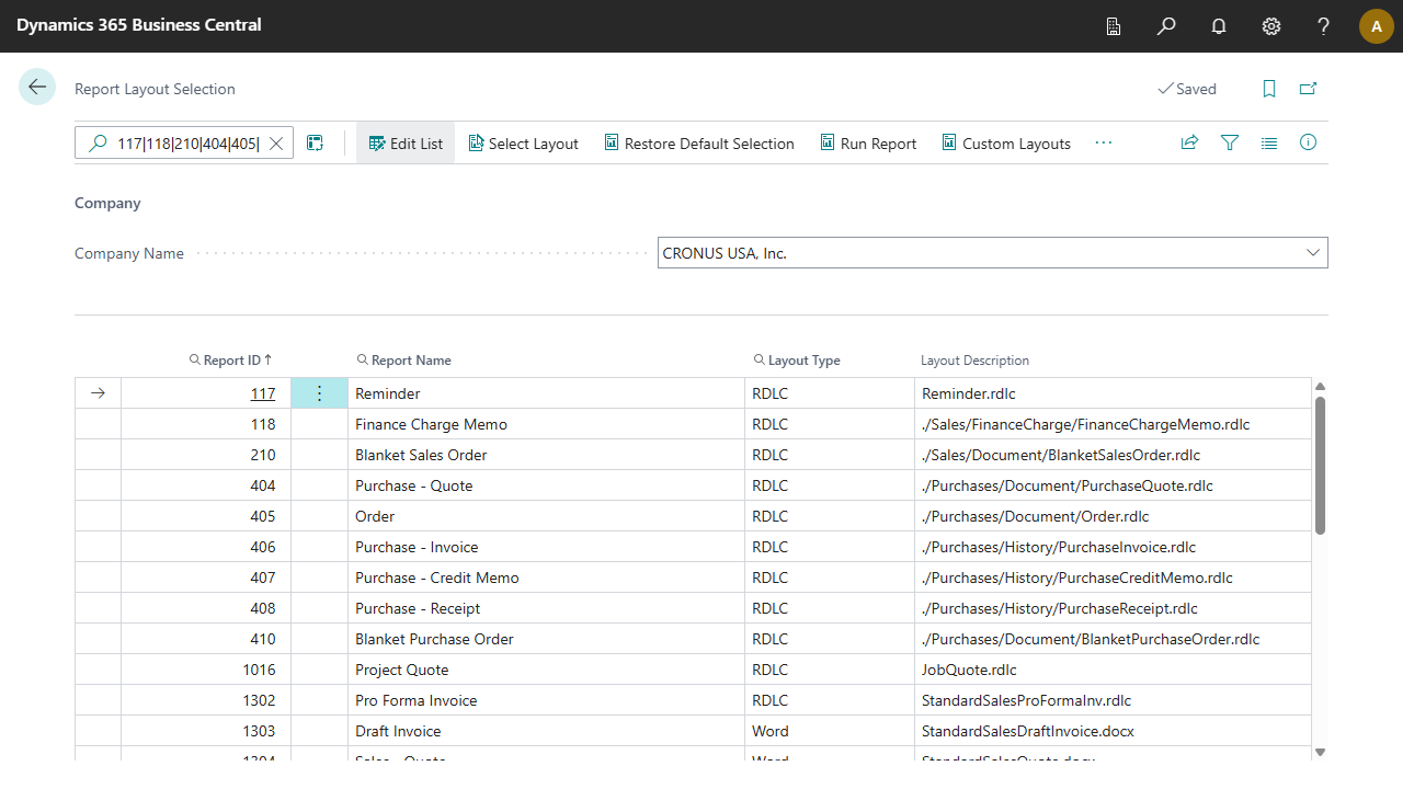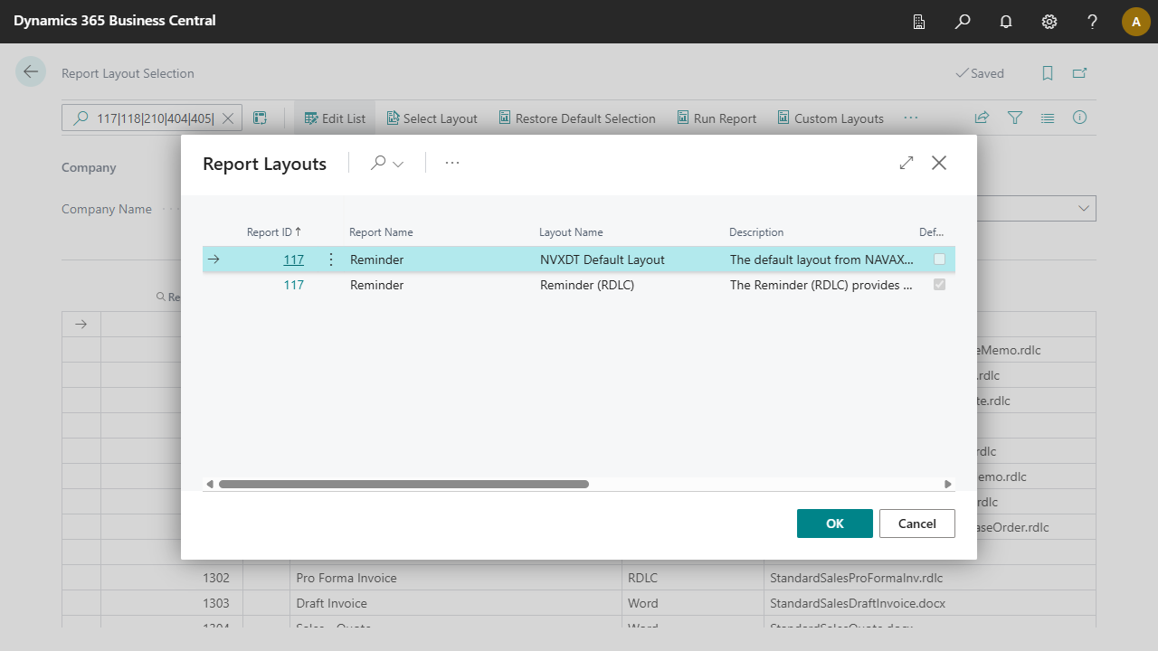 Report Layout Selection The Report Layout Selection window defines which layout should be used when printing a document. For document texts to be printed on A4 documents, the corresponding NAVAX Document Text report layouts must be set up...