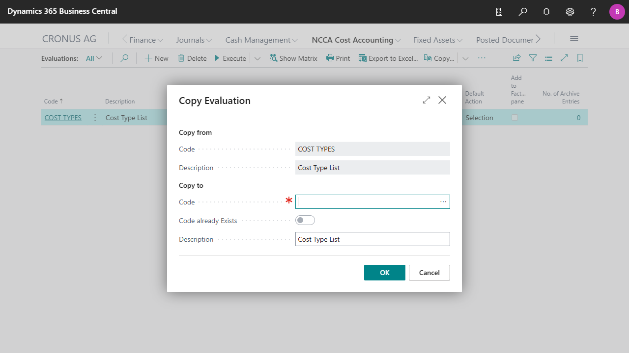 | Code | Specifies the code of the existing evaluation to copy from. |