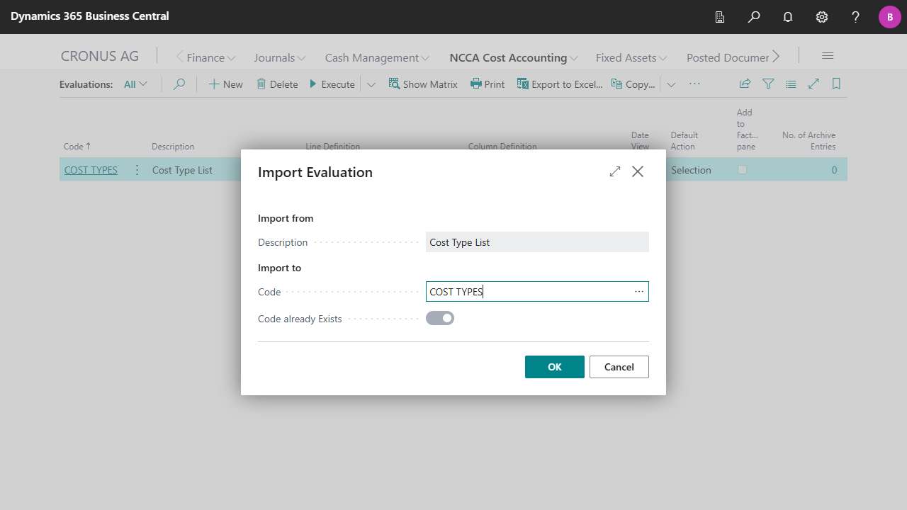 | Code already Exists | Specifies whether an evaluation with the code already exists. An additional confirmation is necessary for replacing an evaluation. |