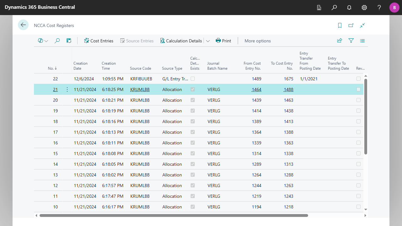| Source Code | Specifies the source code for the entries in the cost register. |