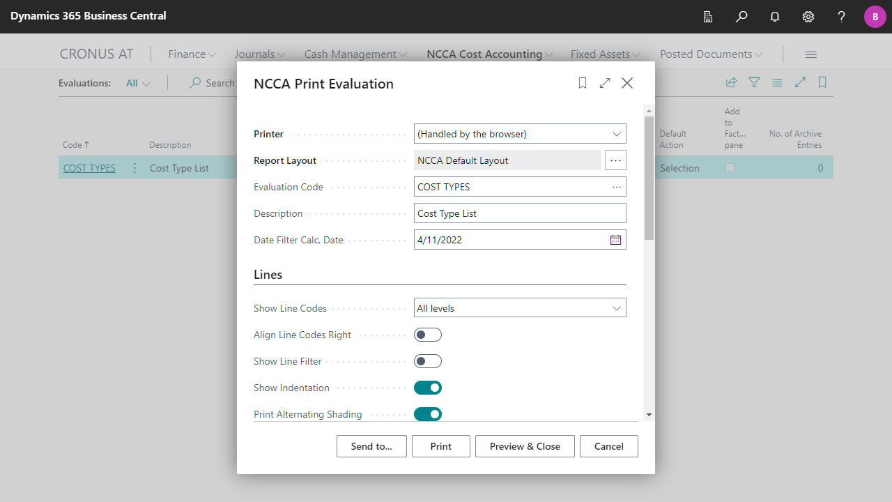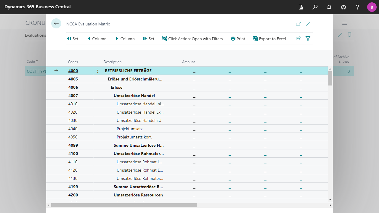 | Cost Type Filter | Specifies a filter that will be used to filter or calculate the values. The caption of the field depends on how the cost type is set up in the Cost Dimension Setup. |