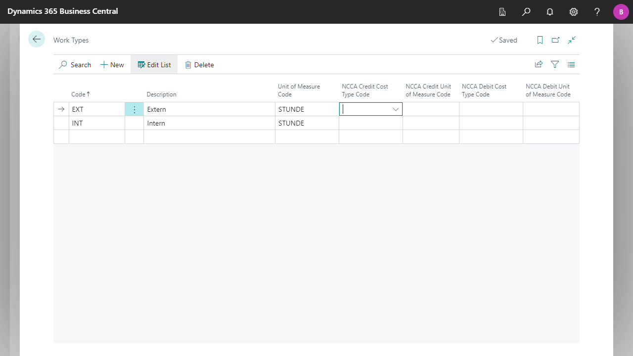 | NCCA Credit Cost Type Code | Specifies a Credit Cost Type that is suggested in the Service Allocation Journal when entering the Work Type. |