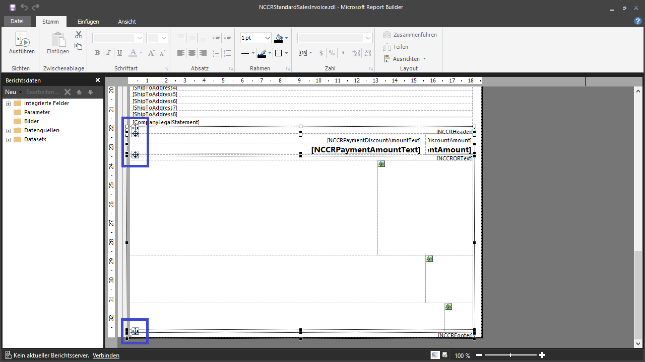 Um die Registrierkassendaten bzw. diese Layoutänderungen in einen anderen Bericht zu integrieren, gehen Sie wie folgt vor: