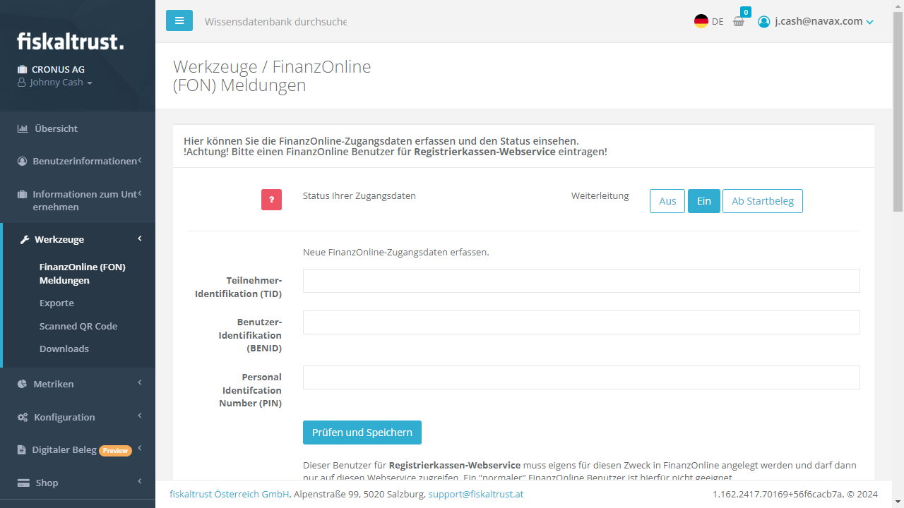 Wie fordere ich meinen fiskaltrust-Zugang an?