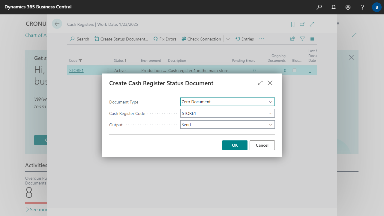 | Cash Register Code | Specifies for which Cash Register the status document should be created. |
