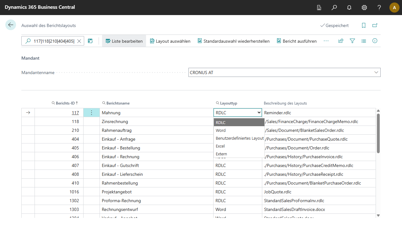 Seit Microsoft Dynamics 365 Business Central 2024 Wave 2 (BC25) werden sowohl RDLC- als auch Word-Berichtslayouts unterstützt.