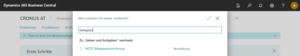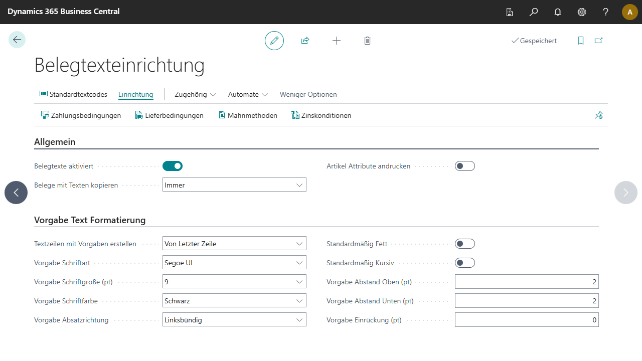 Deaktiviert: Das Standard-Feature für Textbausteine in Business Central wird verwendet.