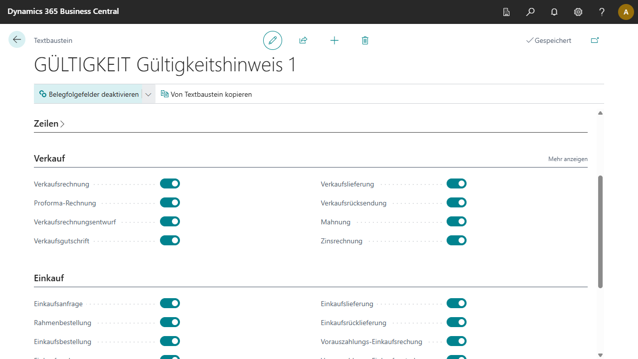 Legen Sie die Belegarten fest, für die der Textbaustein gelten soll:
