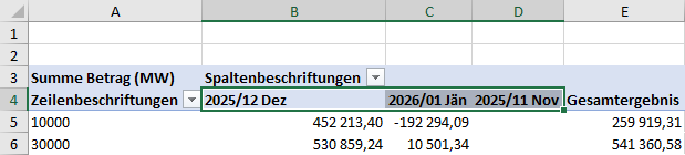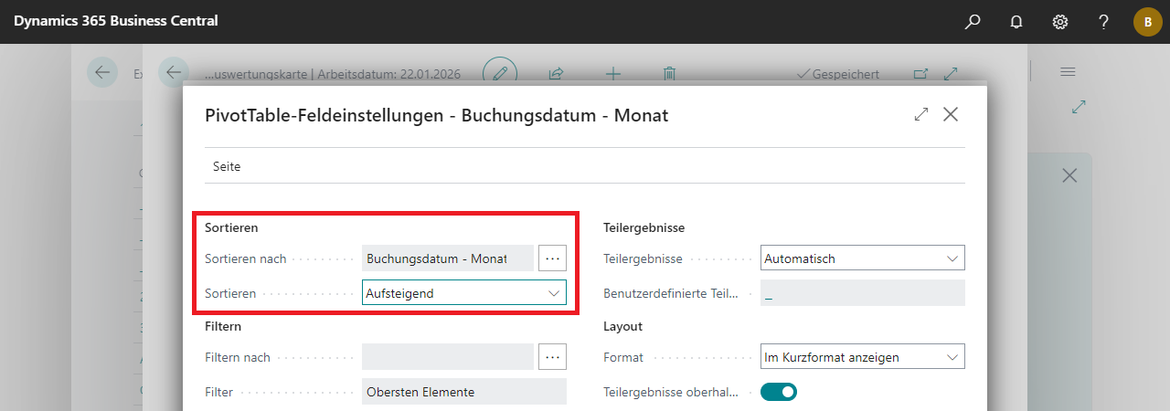 PivotTable als Spaltenbeschriftung verwenden, hängt die Sortierung standardmässig von der Sortierung der Datensätze im Datenblatt ab. Dadurch ergibt sich unter Umständen folgendes Ergebnis: