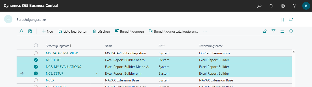 Für den Excel Report Builder stehen folgende Berechtigungssätze zur Verfügung:
