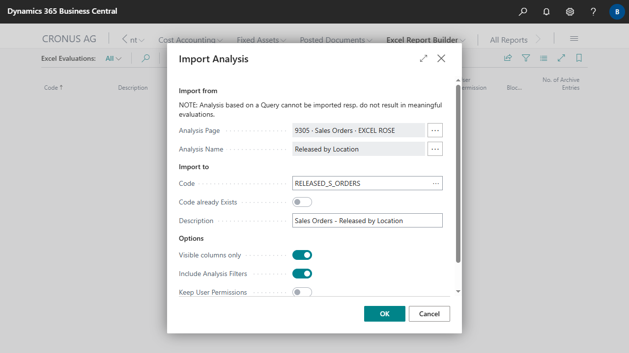 | Include Analysis Filters | Specifies whether the analysis filters are to be transferred to the evaluation. |