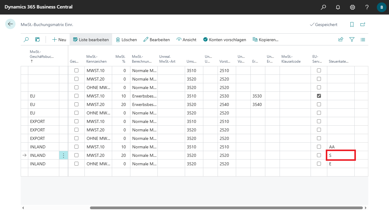 MwSt.-Buchungsmatrix Einr.