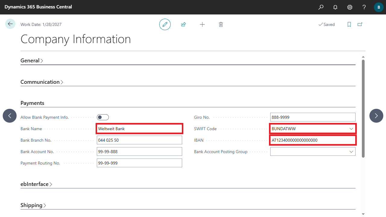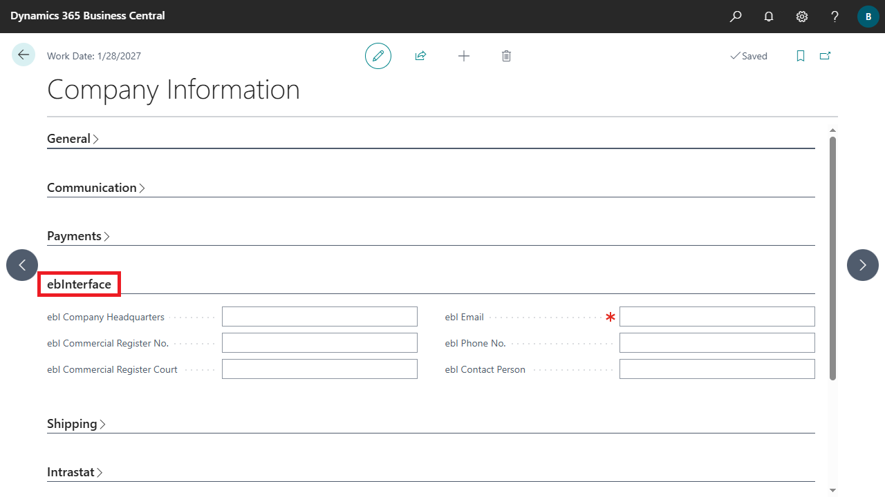 | ebI Company Headquarters | Specifies the company headquarters that should be communicated to ebInterface. |