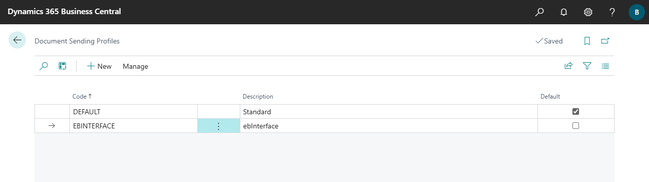 | Default | A default document sending profile must be available in the system. Therefore, set a different profile as the default if you do not want to automatically create ebInterface documents for all customers for which no profile has been specified.