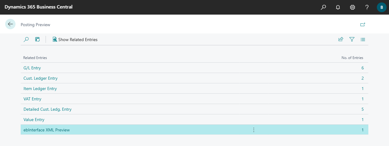 Click on the No. of entries field or on the Show Related Entries action to display the preview.