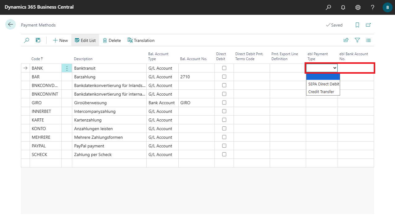 | ebI Payment Type | Specifies the payment type for ebInterface invoices.