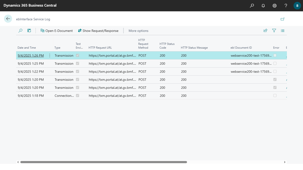 | Test Environment | Specifies whether the data has been sent to the ebInterface Test Environment. |