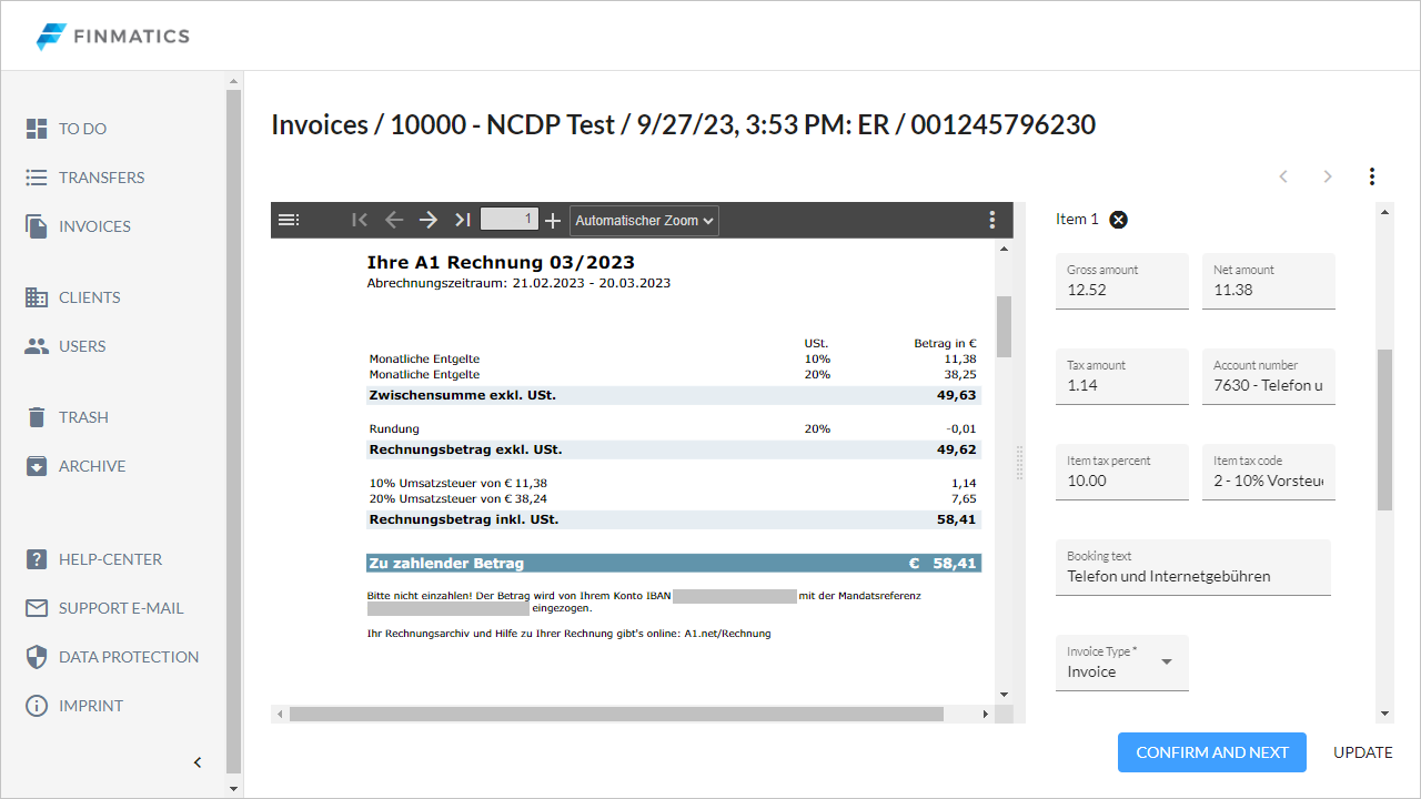 | Invoice No. | Displays the value that Finmatics has determined for the document. |