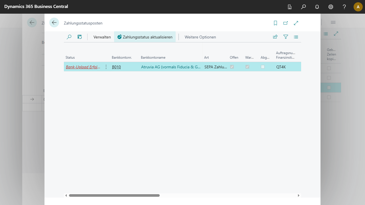 | Lfd. Nr. | Zeigt die Postennummer an, die dem Zahlungsstatuspostens zugeordnet wurde. |