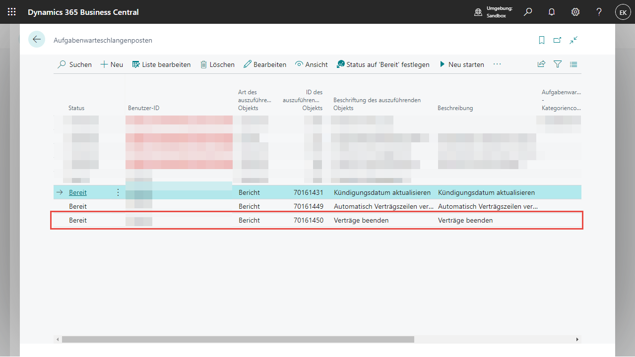 Eine Vertragszeile wird auf den in der NCRC Wiederkehrende Verträge Einrichtung definierten Beendet Status gesetzt, wenn