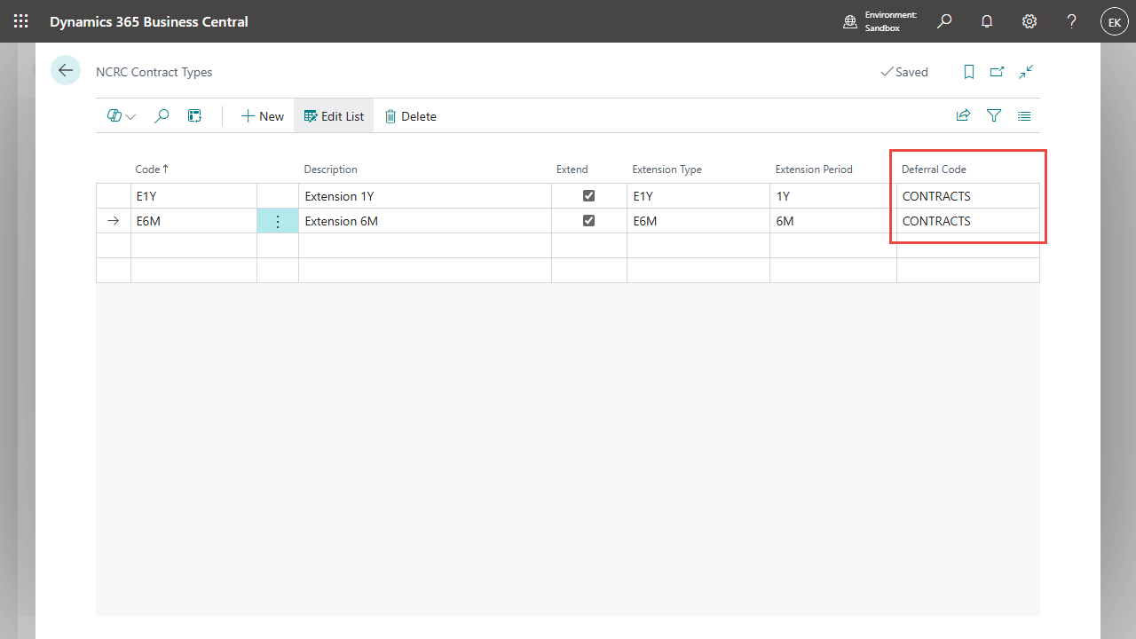 The deferral template can be stored directly in the NCRC contract type in order to transfer it automatically to the contract lines.