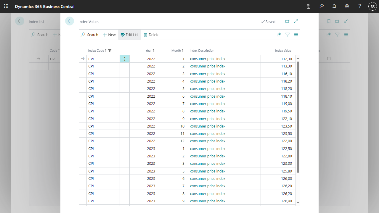 In the index list, index codes are entered, which are then also assigned to a Contract, or a Contract line.