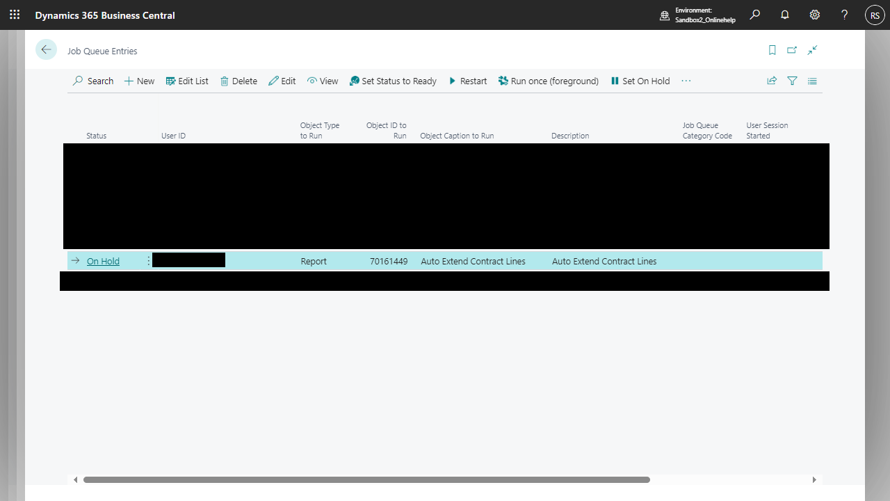 The status of the Contract line briefly changes to the Extension status defined in the NCRC Recurring Contracts Setup.