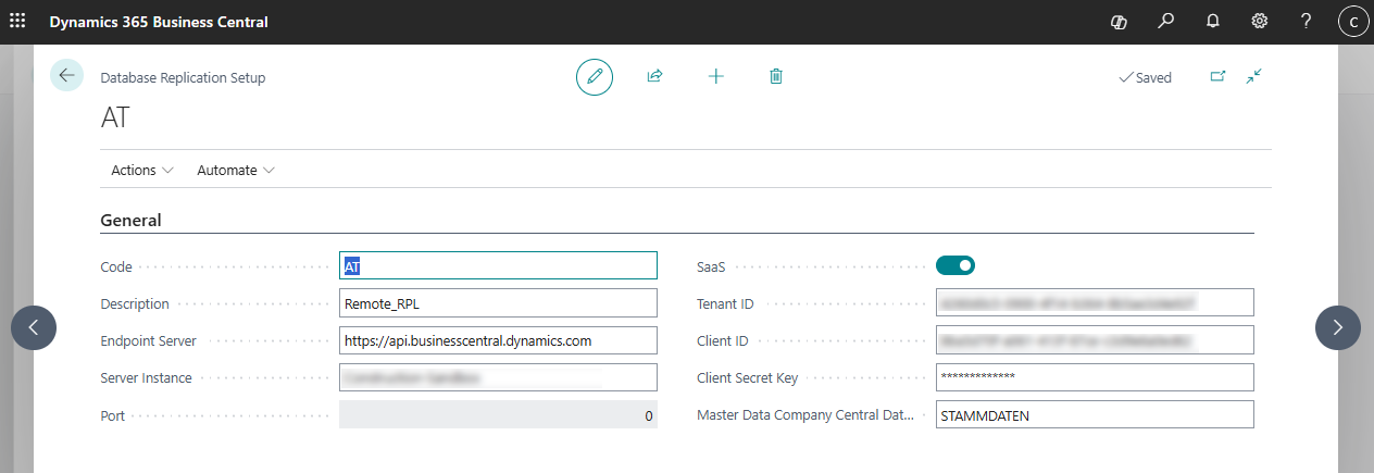 | Master Data Company Central Database | Enter the name of the master data company in the main database here. |