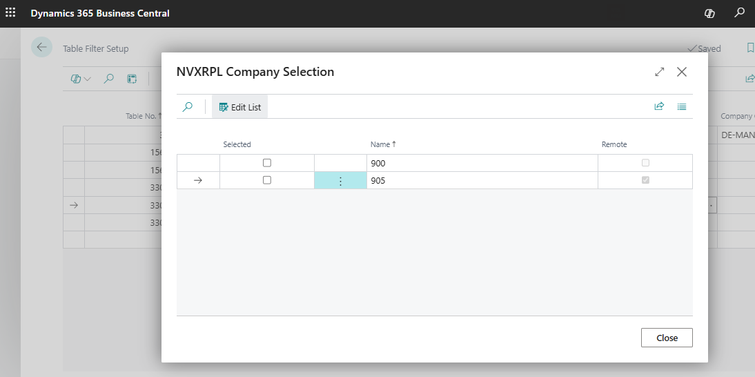 | Ignore Company | If set to "Yes", you can click on the three dots to define in which companies this table should not be replicated. This setup takes effect before all other setups as well - for example, if you replicate using company groups or have set filters. |