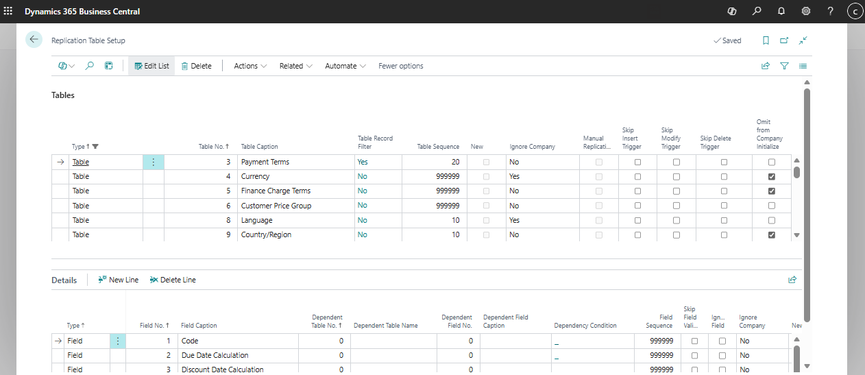 When using the "Initialize Company" action, the tables are replicated according to this sequence.