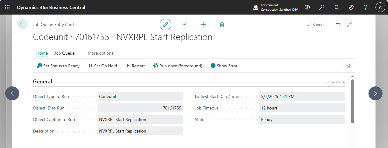 Codeunit 70161755 - "NVXRPL Start Replication"