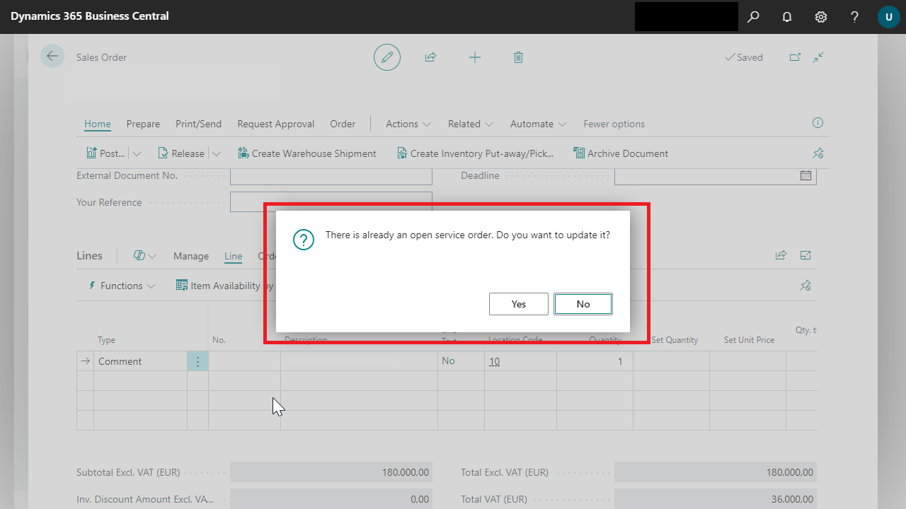 If you have converted the selected sales order lines into a service order, the following happens: