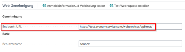 In dem Register Web Genehmigung müssen die korrekten Zugangsdaten für den Webservice hinterlegt werden (User+Passwort). Diese Funktion wird von der App „Web Utility Library“ zur Verfügung gestellt.