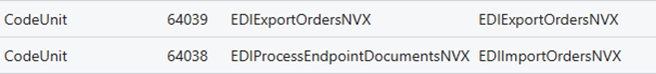 These codeunits export and import the stored files at the respective endpoints of the EDI user interfaces. For this to work, both EDI interfaces must be properly configured.