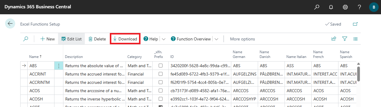 Next, open the Excel Functions using the corresponding action in the Excel Report Builder Setup. Via the Download action the setup can be created or updated quickly and easily.