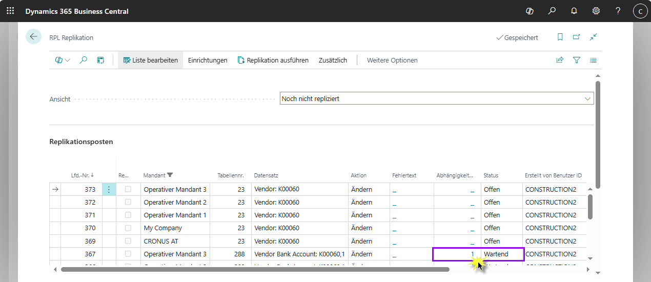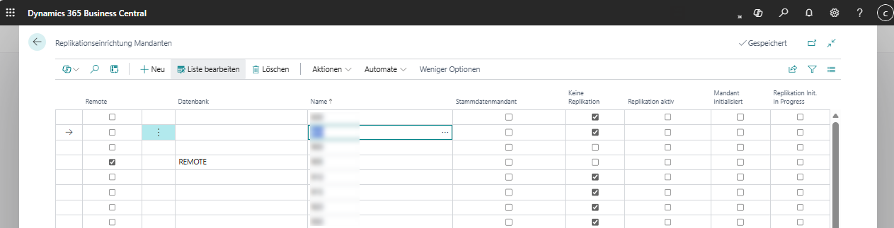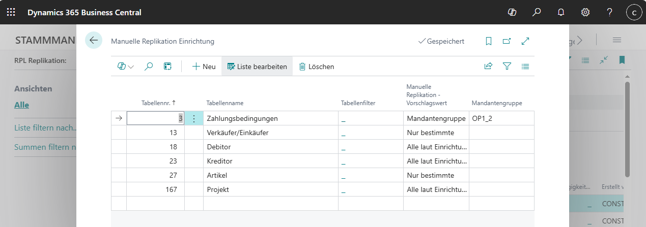 Repl.-Einrichtung von Tabellen in Bearbeitung