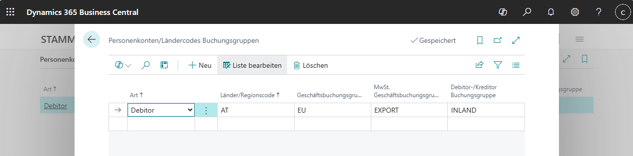 Personenkonten/Ländercodes Buchungsgruppen Wenn Sie in Ihren beteiligten Mandanten unterschiedliche Länder abbilden, dann wollen Sie die Buchungsgruppen Ihrer Debitoren und Kreditoren vermutlich nicht in alle Mandanten ident ausrollen. So kann z.B. ein AT-Kreditor in einem Mandanten ein Inlands-Kreditor sein, in einem weiteren ein EU-Kreditor und im dritten Mandanten gar ein Export-Kreditor. Daher gibt es eine Möglichkeit, die Buchungsgruppen beim Replizieren abhängig von Ihrem Länder-/Regionscode in die einzelnen Mandanten unterschiedlich zu replizieren...