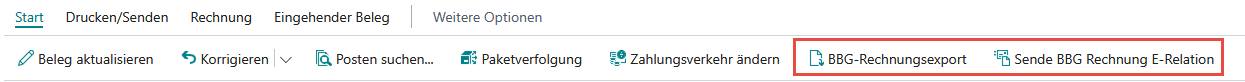 "BBG Bestellpositionsnr." wurde in der Geb./Ungeb. Verkaufsrechnungs Karte hinzugefügt. Das Feld ist in "Zeile" zu finden.
