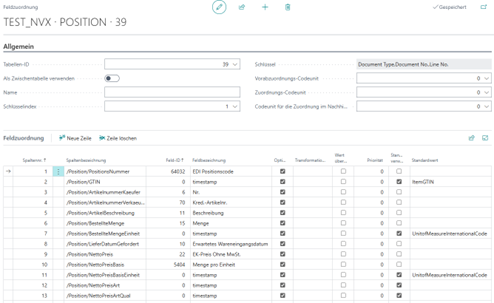 When importing the DESADV, the sales order is filtered via the purchase order. The following data from the XML file is transferred into the sales order: