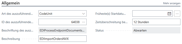 A specific codeunit is used for the import of EDI documents, which must be set up in the job queues:
