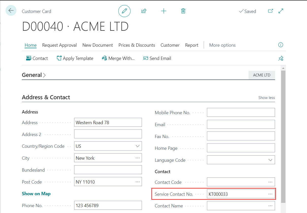 Service Contact in Customer In many companies there is a special employee who takes care of complaints to suppliers. This employee can be created as a Contact and entered in the Service Contact No. in the Customer Card. If a Customer has a Service Contact No., then instead of the Contact Code it is transferred automatically to the Sales Return Order...